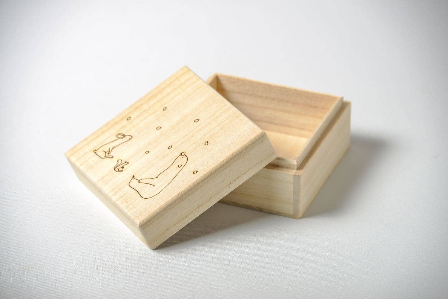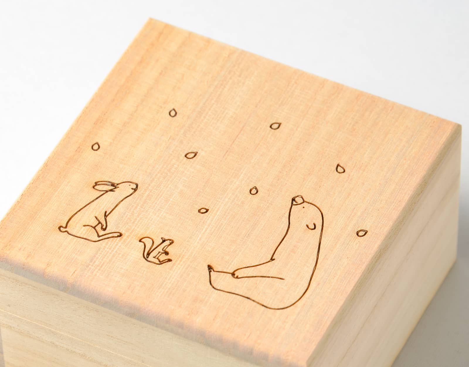焼印・箔押し・シルク印刷・インクジェット印刷・レーザー加工をすべての箱に入れることができます。
