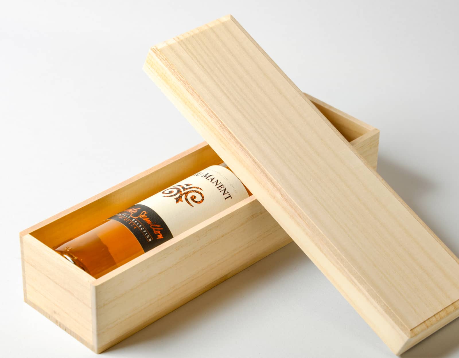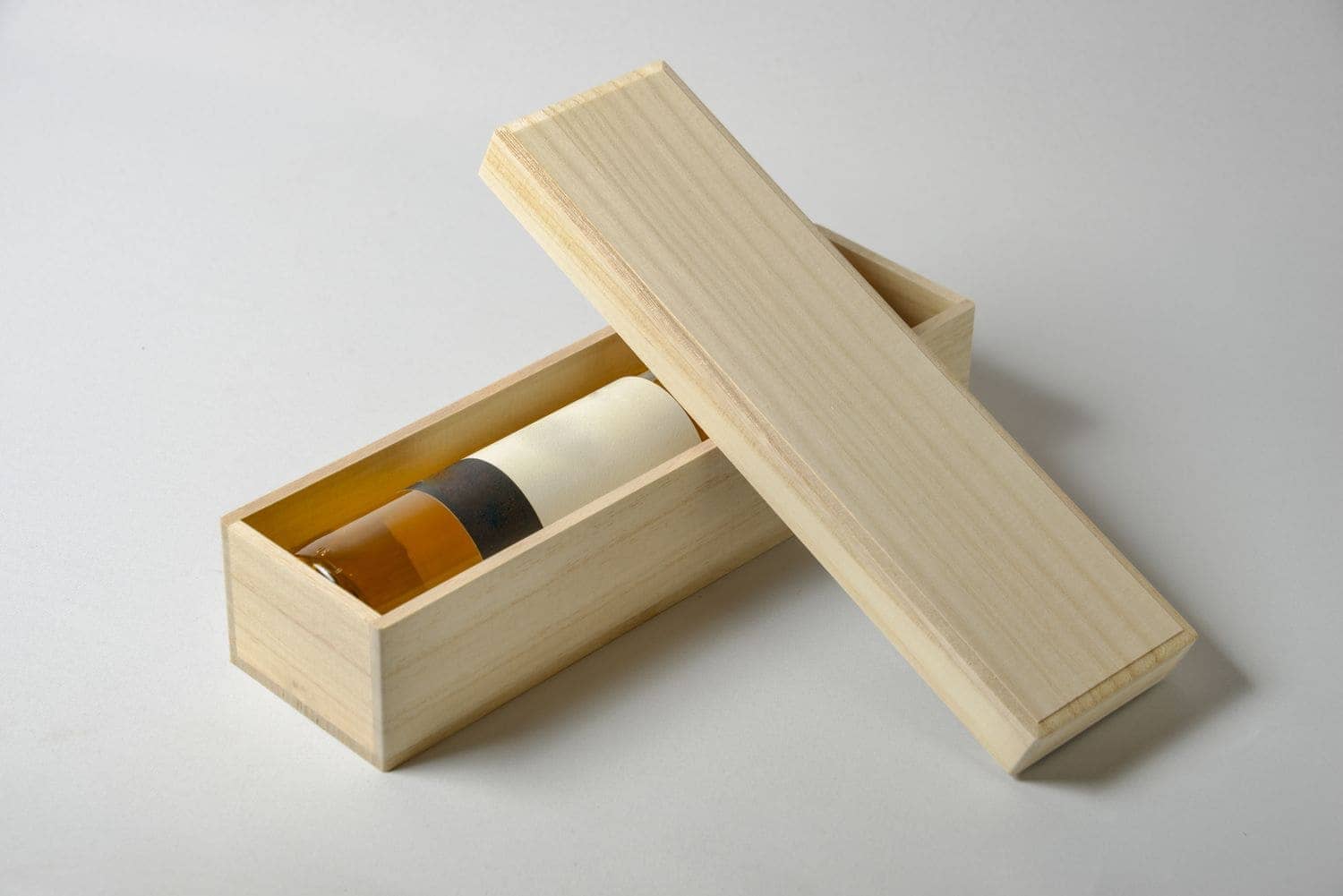 桐材は軽くて柔らかく耐久性があり、クッション性にも優れています。しかし、桐の特性を熟知していないとお使いが難しく、桐箱は作り手を選ぶパッケージです。さらに、高級感を感じていたけるように箱に1個ずつにサンダー仕上げを行い、美しい木目を生かしています。箔押し・焼印といった加工も自社工場内でおこなっています。